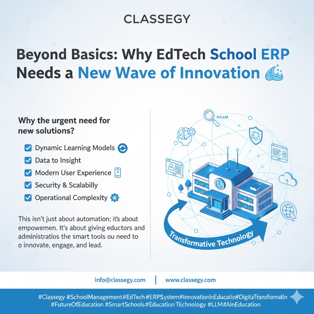 #Classegy #SchoolManagement #EdTech #ERPSystem #InnovationInEducation #DigitalTransformation #FutureOfEducation #SmartSchools #EducationTechnology #LLM #AIinEducation