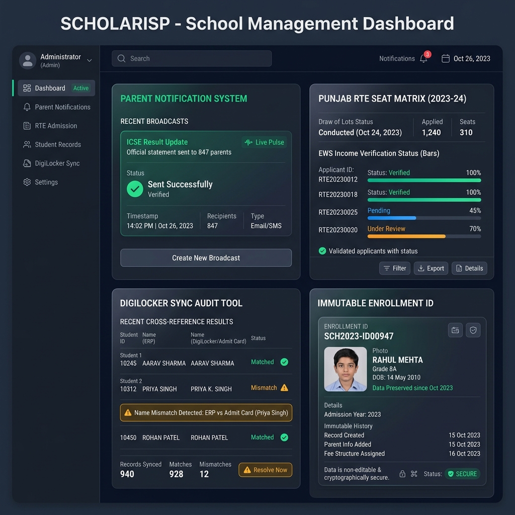 Deploy the Parent Notification System and DigiLocker Audit tools immediately for the critical result season.